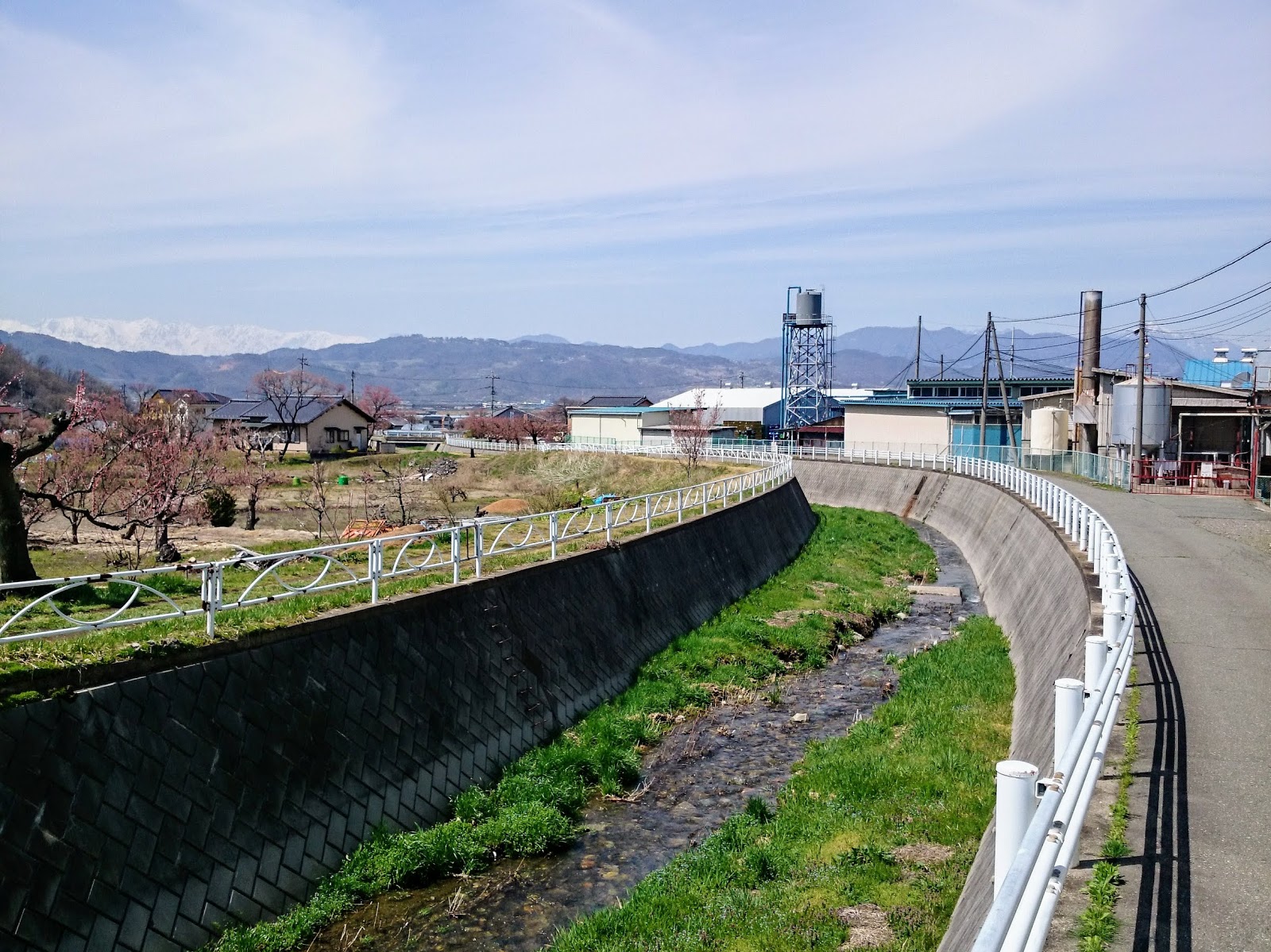 千曲川の対岸に見える戸倉宿キティパークも桜の名所。そこから更に上って宮坂峠を越えるとあんずの里へ行けます。ヒルクライム成分が足りない方はこちらへどうぞ。
