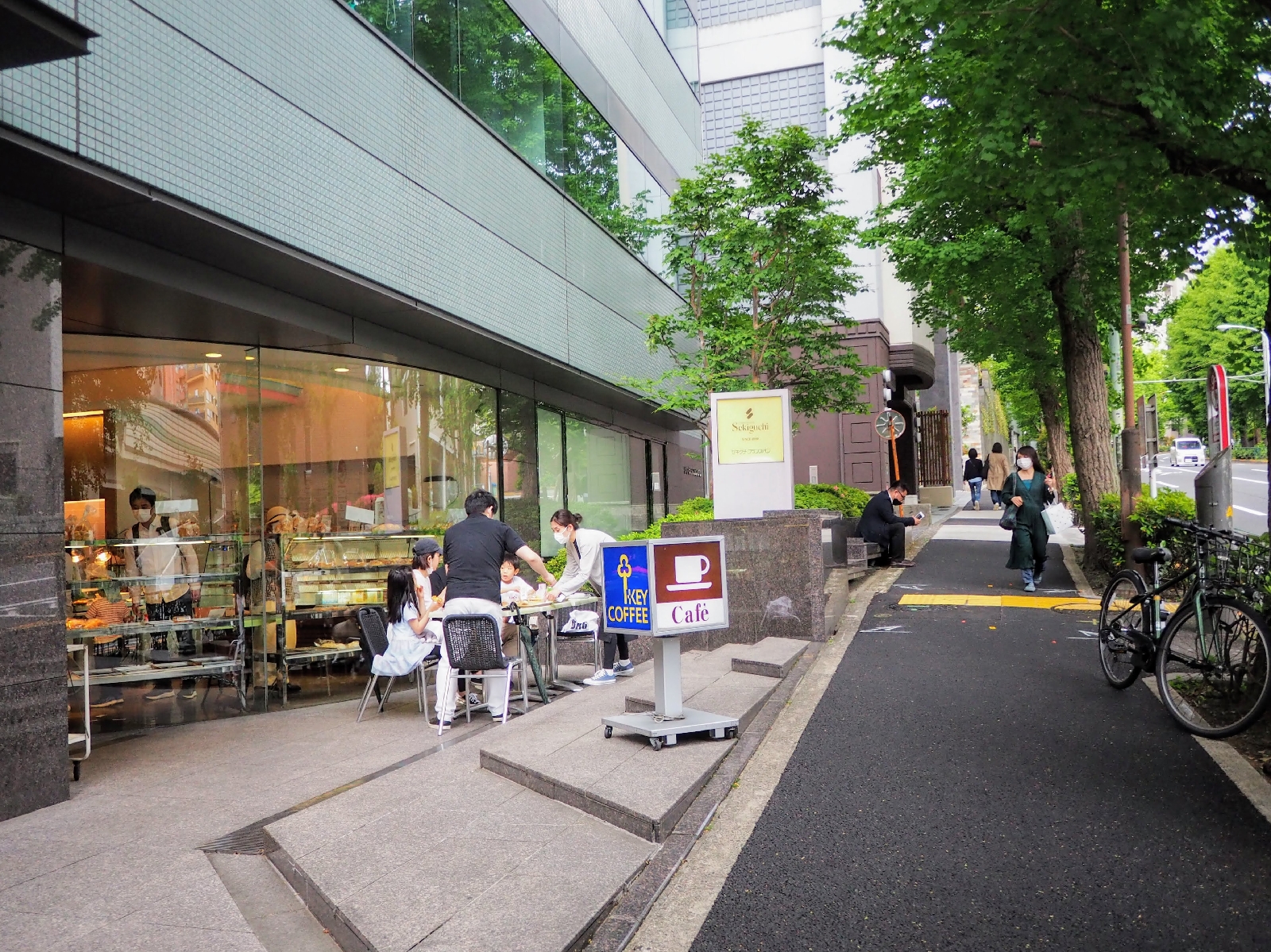 カウンターの奥にずらりと並ぶコーヒー豆、目の前でハンドドリップされたたコーヒーは雑味がなく正統派の美味しさ。店員さんのサービスもキビキビしていて気持ちいい。