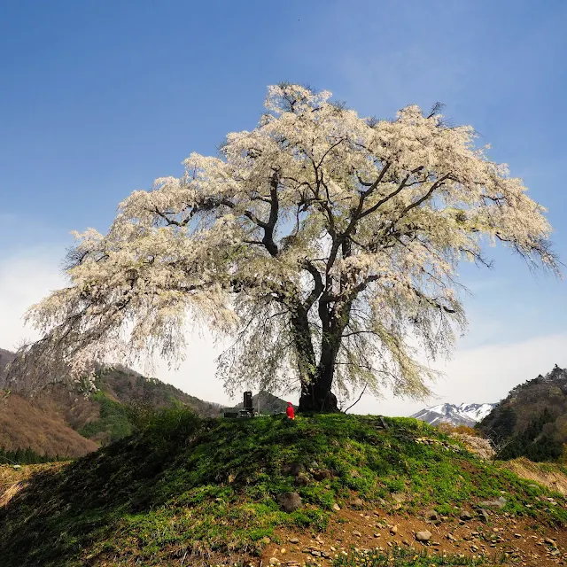 苗代を作るころに開花することから「発知の苗代桜」とも呼ばれ親しまれているエドヒガンの木。