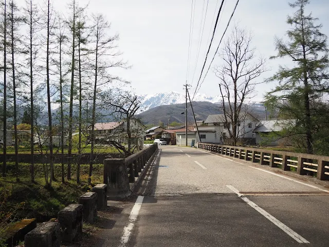 高瀬川を渡ります。(大町方面へ急ぐ場合は渡らずに県道51号や「塩の道」を進んだほうが早いです)