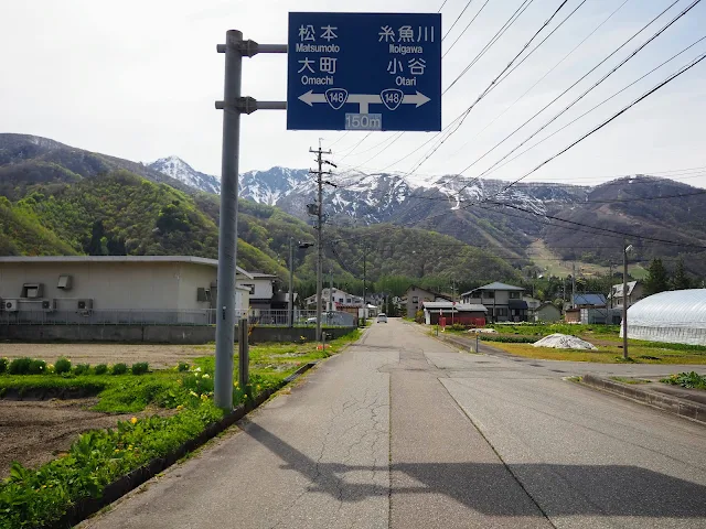 170m程先を右に入ると「白馬小路」の道標があります。白馬村内を自転車やウォーキングで周遊できるルートが整備されているのでそちらも参考にしてみると良いかもしれません。