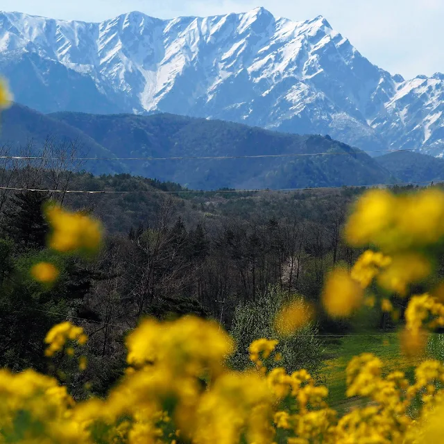 進んでいくと視界いっぱいに北アルプスの山なみが飛び込んでくる場所に出ます。