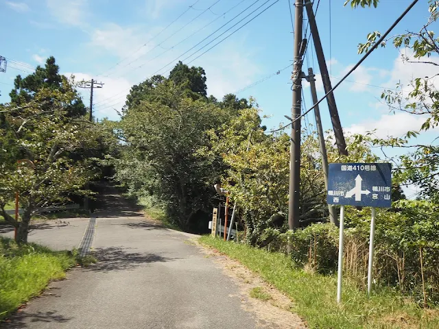 大山千枚田への分岐が現れるので右折します。尾根道から下っていって