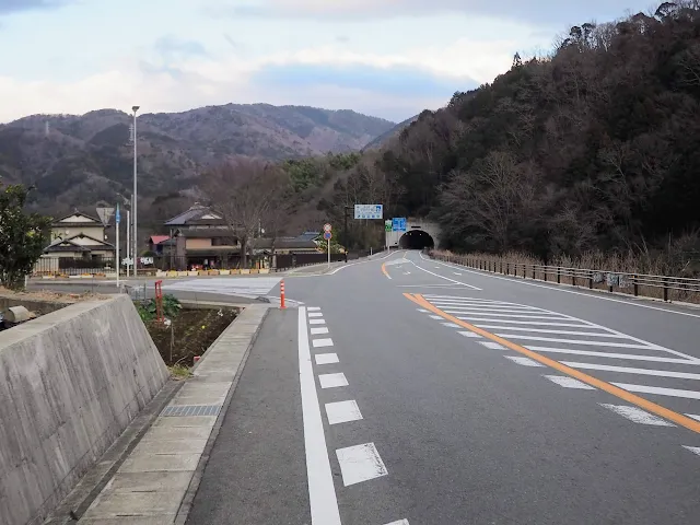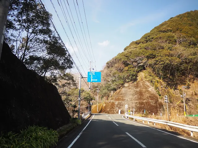 「道の駅 伊豆月ケ瀬」表示のあるトンネル手前で左折