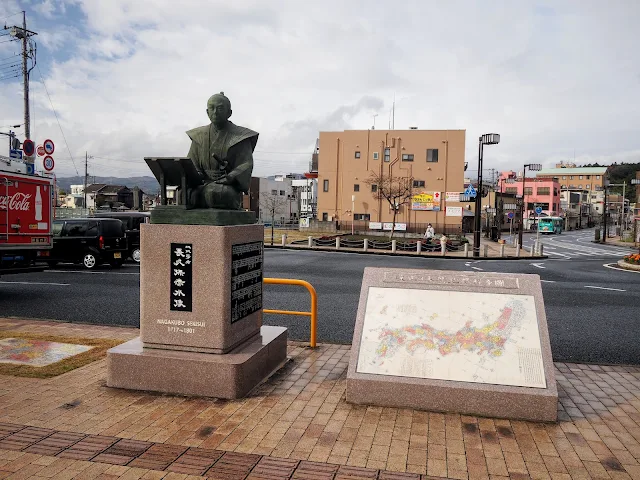 高萩出身の地理学者・長久保赤水の像。1779年に刊行した『改正日本輿地路程全図』(通称「赤水図」)が明治時代までの約100年間に5版を数えるベストセラーになったそうです。伊能忠敬の先駆者的存在