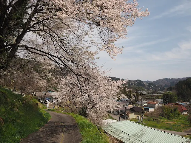 二反田の桜と呼ばれる山桜の斜面を下っていきます