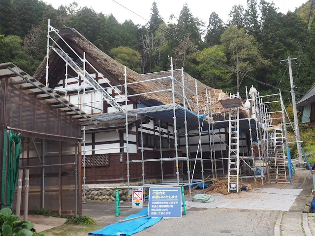 足場が組んであるのは葺き替えなのか?