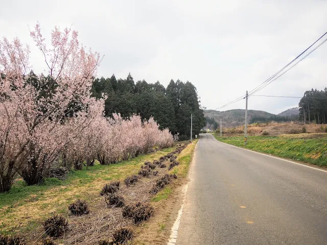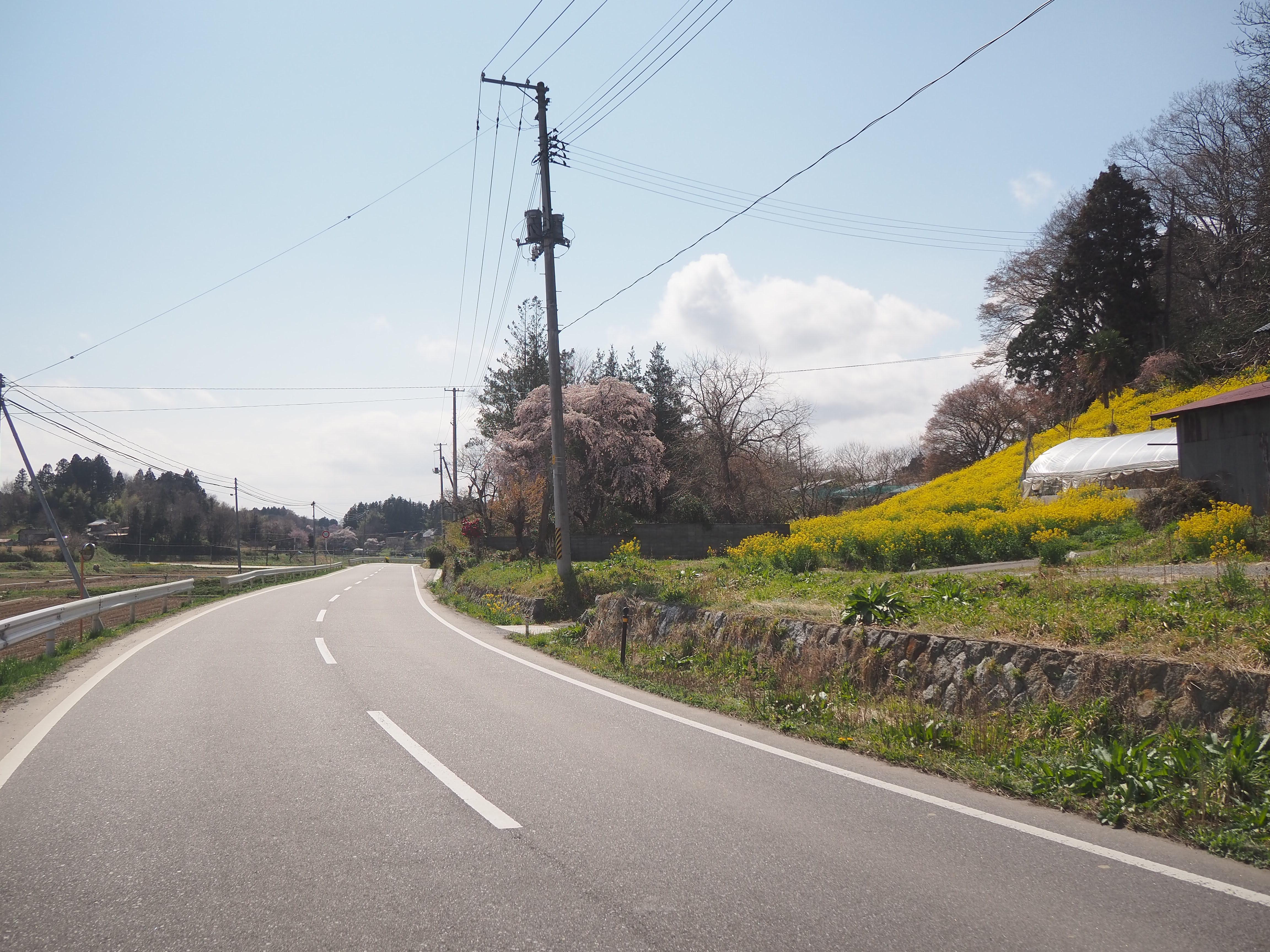 道沿いに菜の花や花桃などが植えられています
