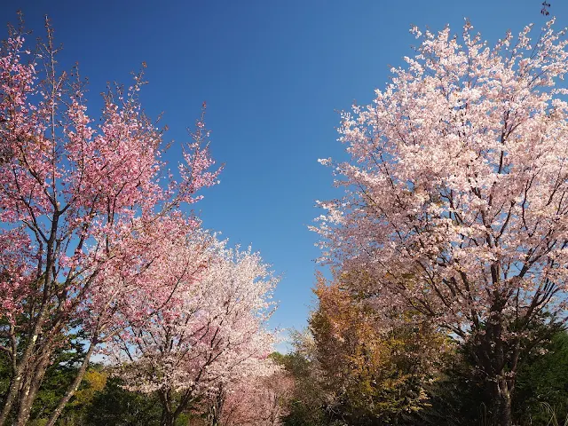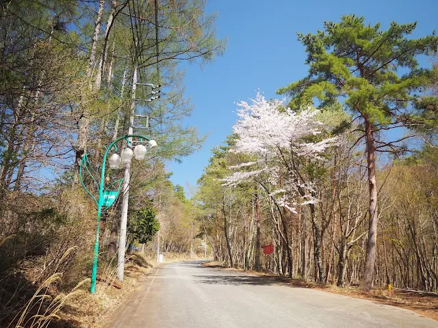 富士桜高原はその名のとおりフジザクラの並木が続きます